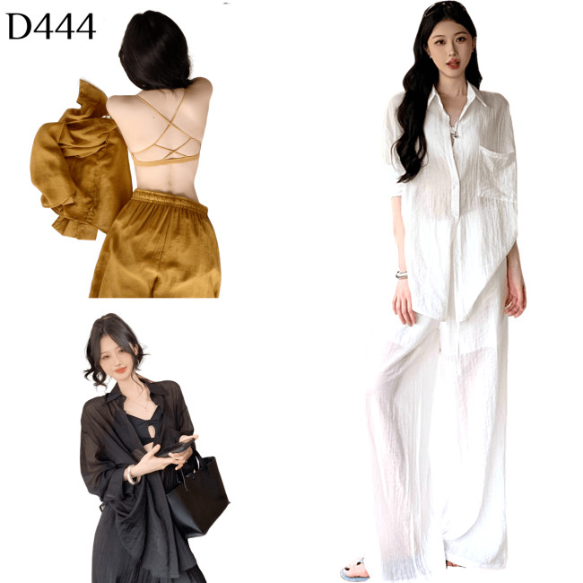 標籤: 白色翻領襯衫 + 抽繩休閒褲套裝 編號:D444, D444, 度假風格