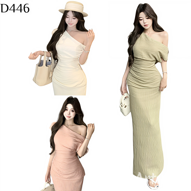 標籤: 壓褶斜肩直筒裙套裝 編號:D446, D446, 度假風格