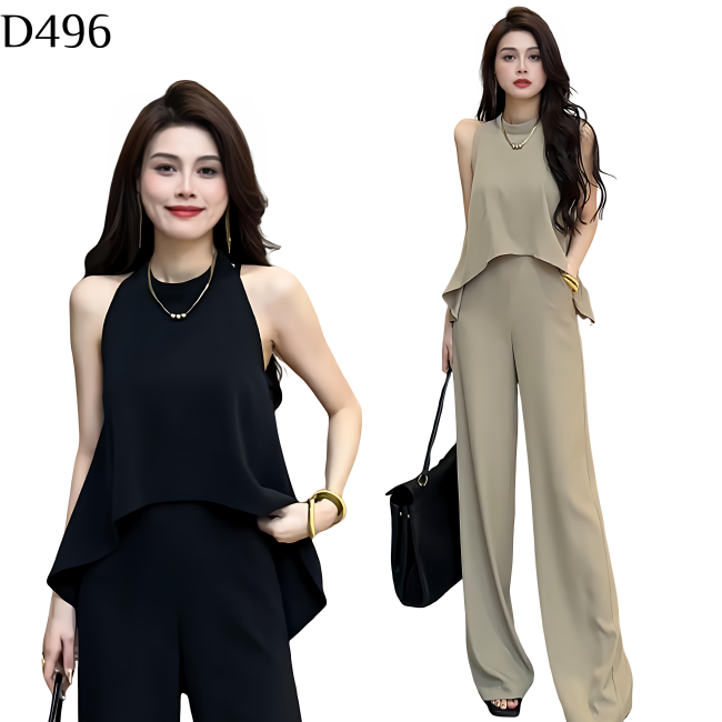 標籤: 露肩上衣+闊腿褲套裝 編號:D496, D496, 度假風格