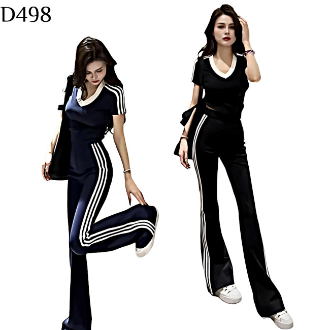 標籤: 條紋拼接+微喇褲套裝 編號:D498, D498, 度假風格