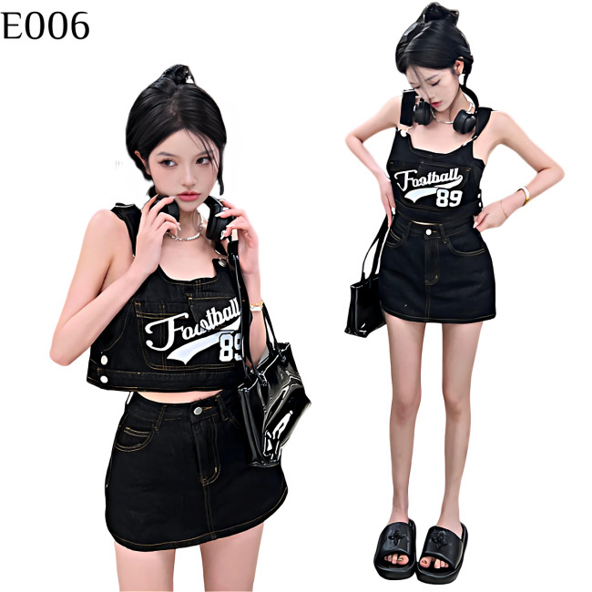 甜辣工裝牛仔背帶套裝 編號:E006