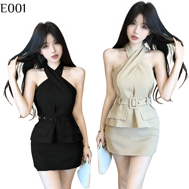 標籤: 交叉掛脖包臀裙套裝 編號:E001, E001, 性感➠氣質套裝➠春夏