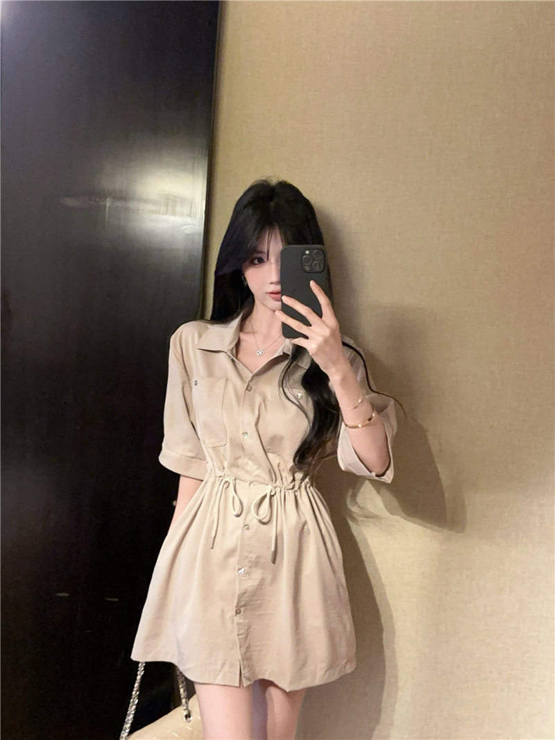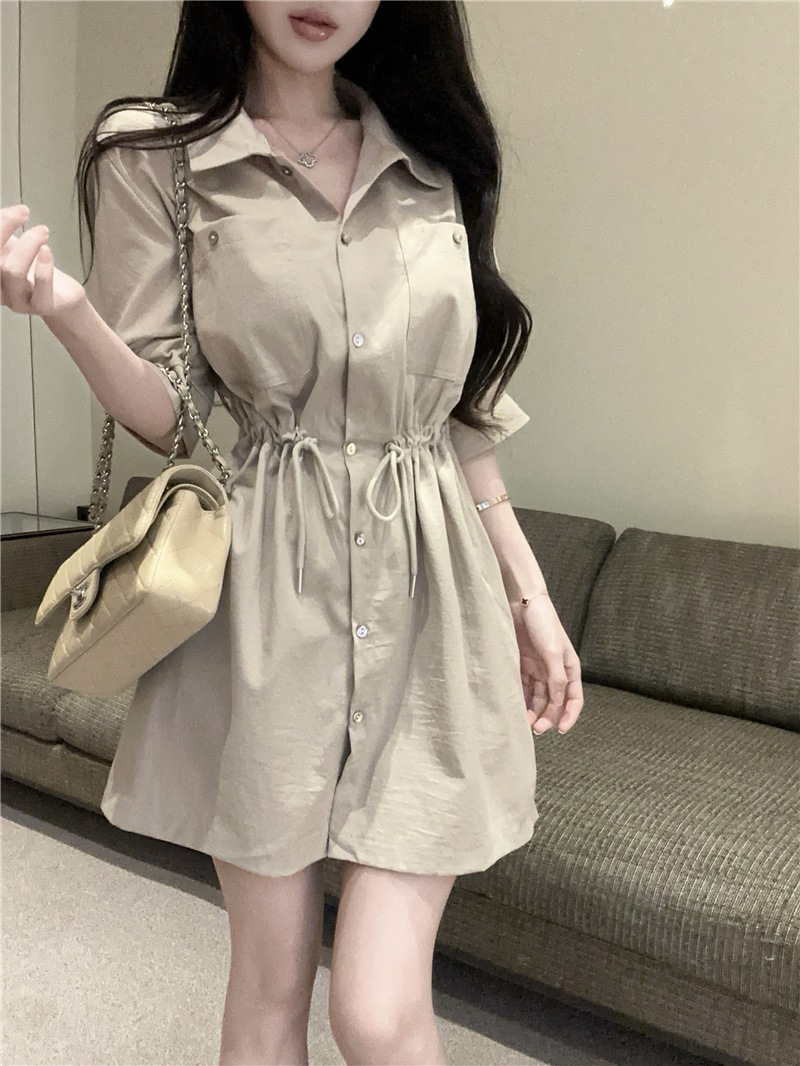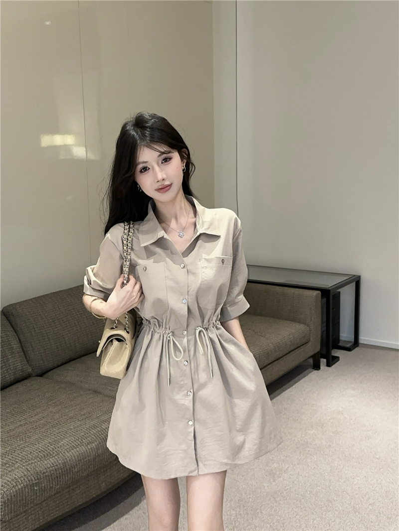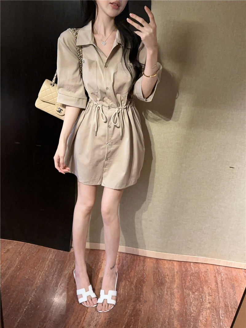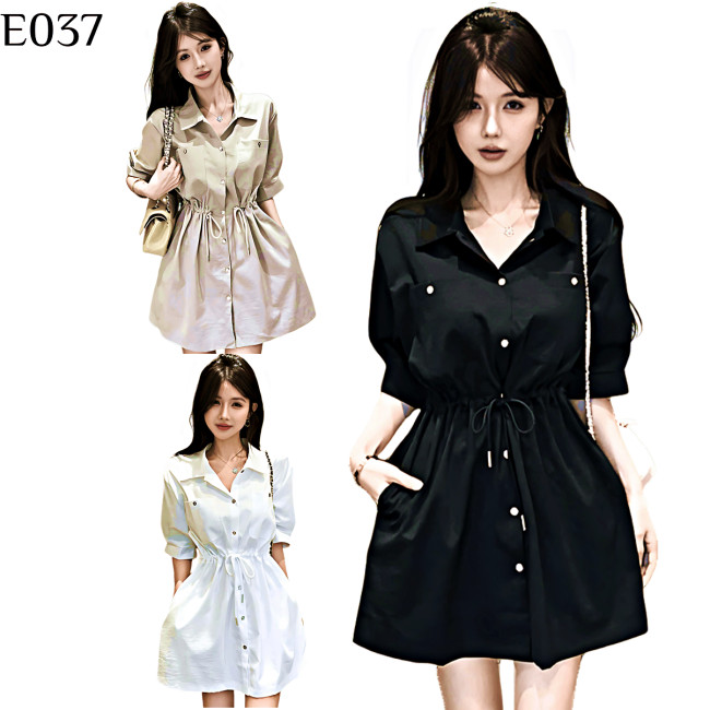 標籤: 復古工裝抽繩連衣裙 編號:E037, E037, 休閒➠連身裙➠春夏