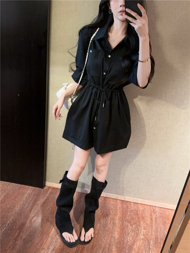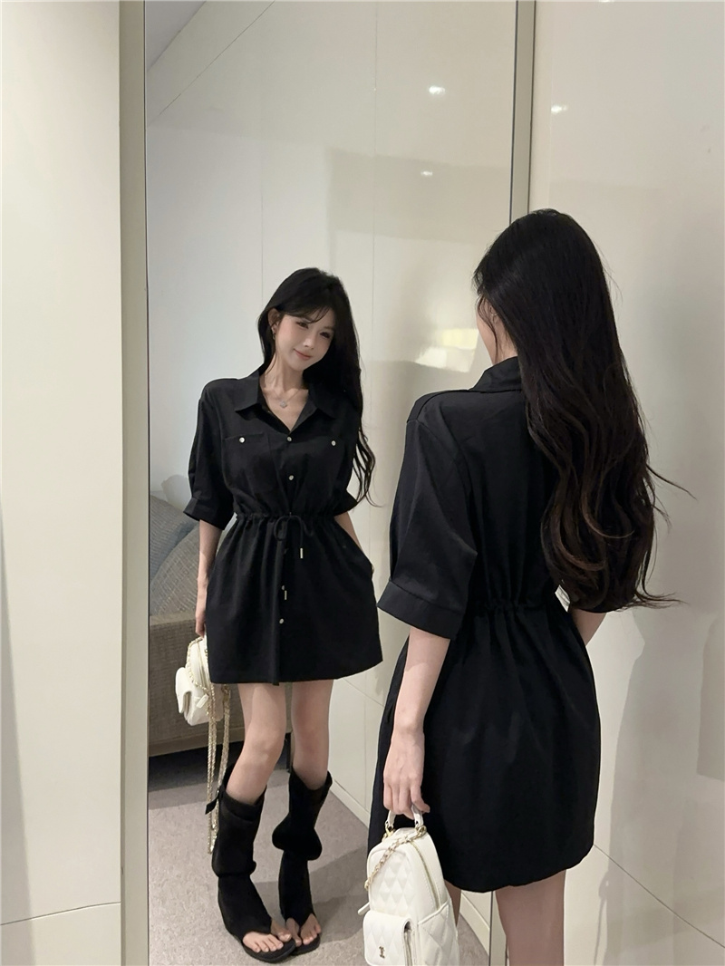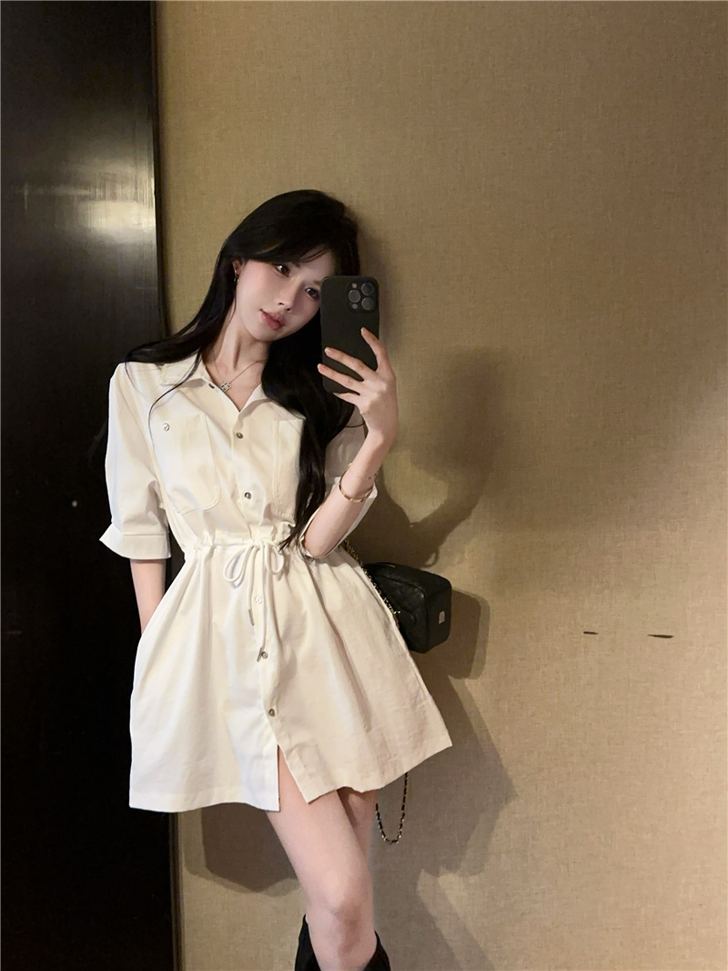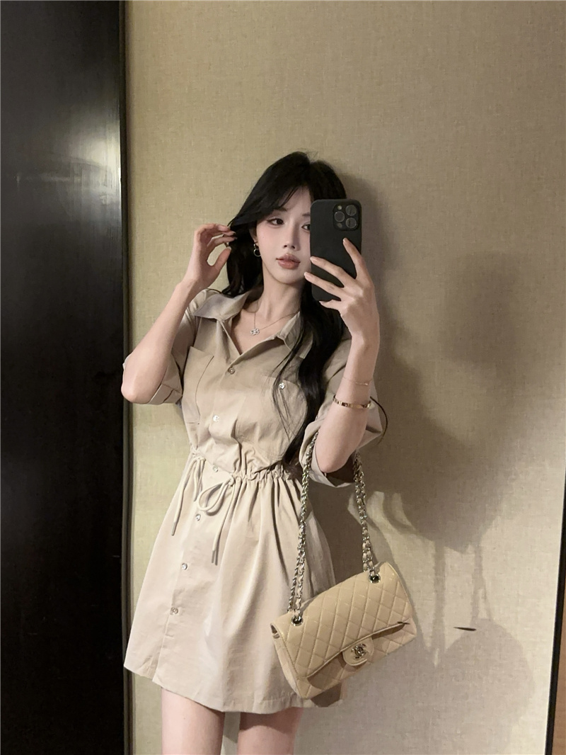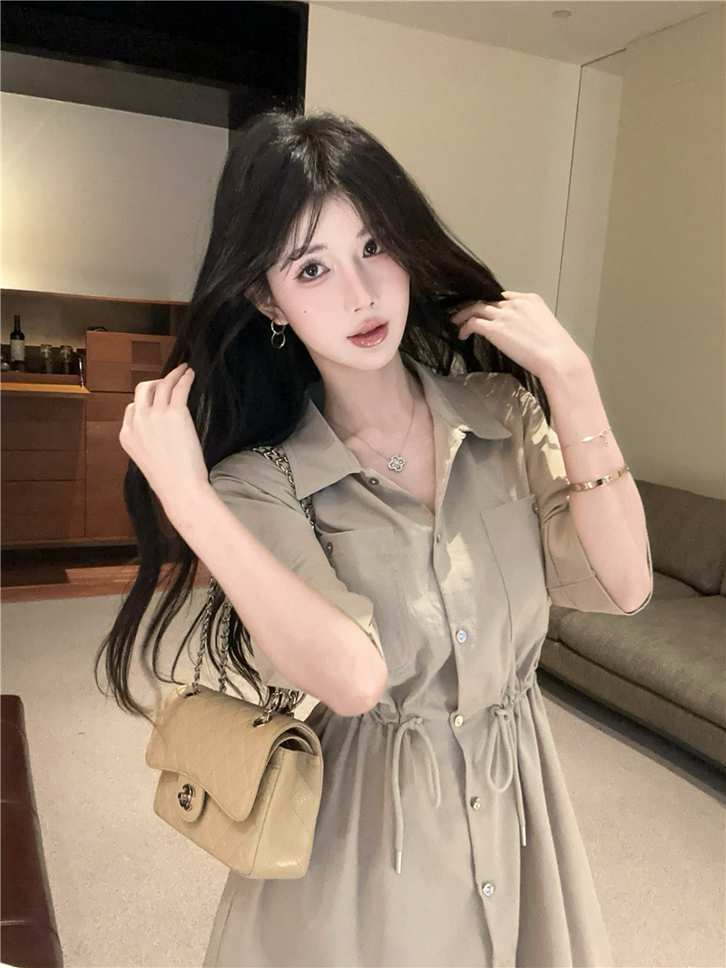 標籤: 復古工裝抽繩連衣裙 編號:E037, E037, 休閒➠連身裙➠春夏