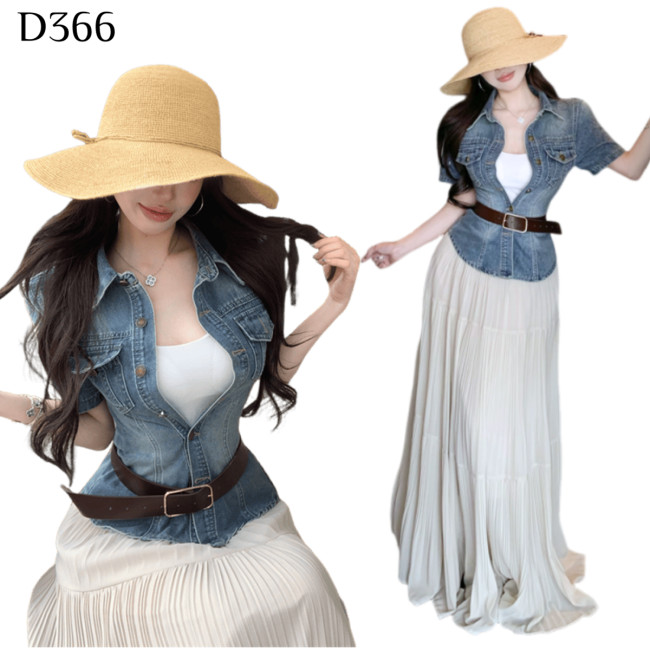 標籤: 牛仔襯衫+半身裙 套裝 編號:D366, D366, 度假風格