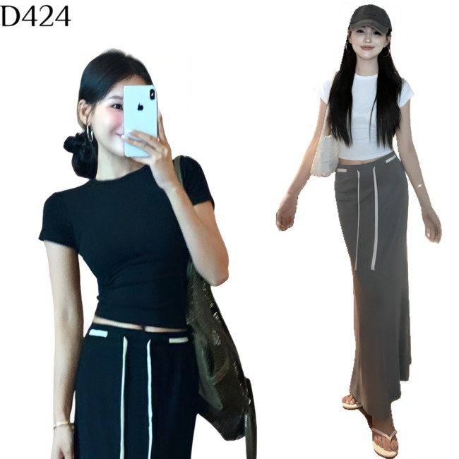 標籤: 彈力抽繩A字裙套裝 編號:D424, D424, 休閒➠套裝➠春夏