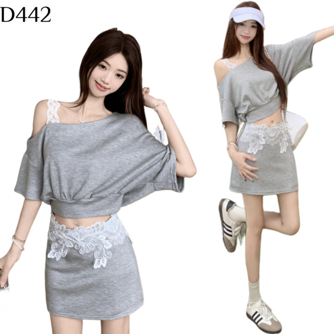 標籤: 斜肩蕾絲裙褲套裝 編號:D442, D442, 休閒➠套裝➠春夏