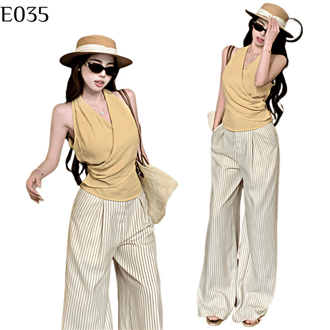 標籤: 掛脖條紋褲套裝 編號:E035 商品編號, E035, 度假風格