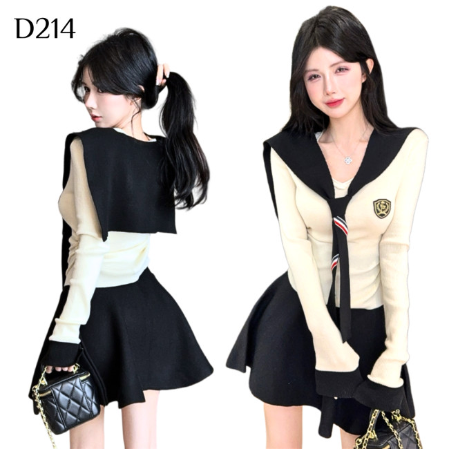 標籤: 學院風披肩百褶裙三件套 編號:D214, D214, 休閒➠套裝➠秋冬