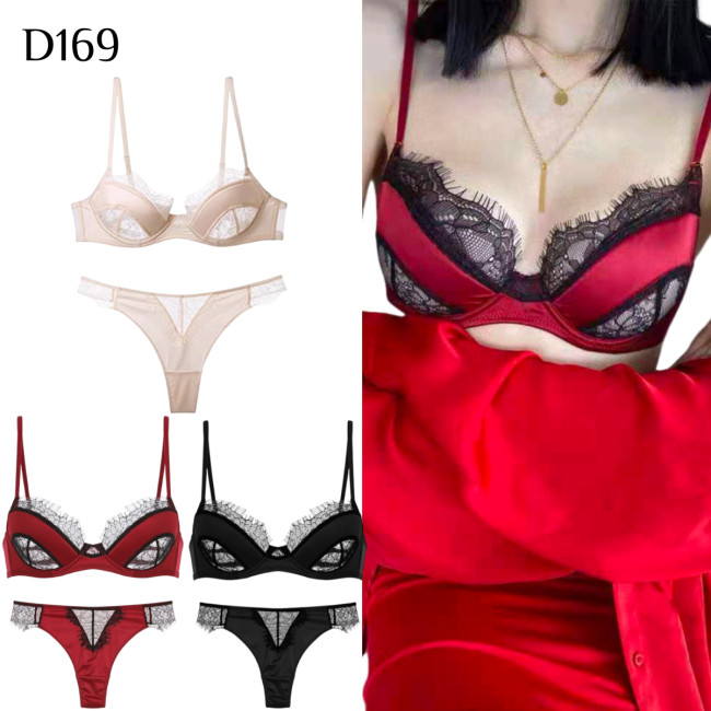 歐洲蕾絲透視拼接性感文胸內衣套裝 編號:D169