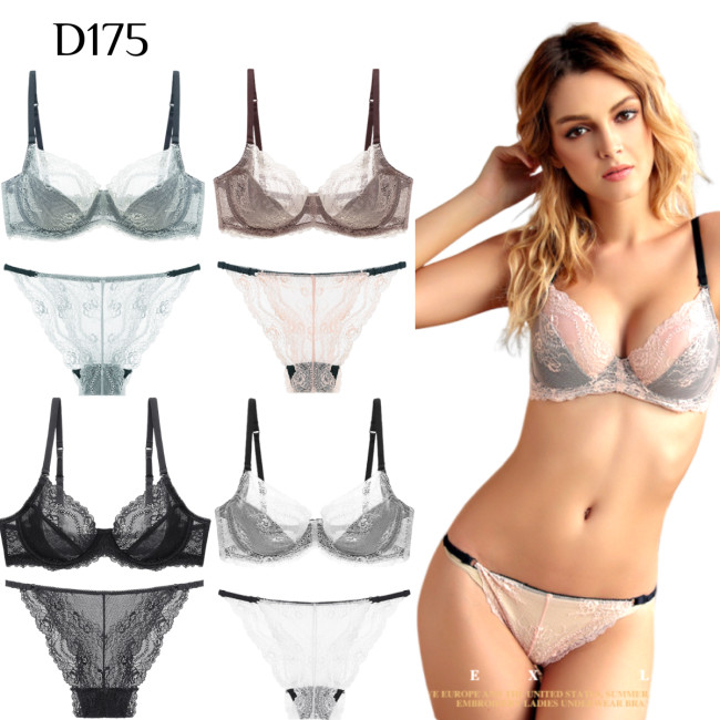 無海綿透明超薄透氣蕾絲內衣套裝 編號:D175