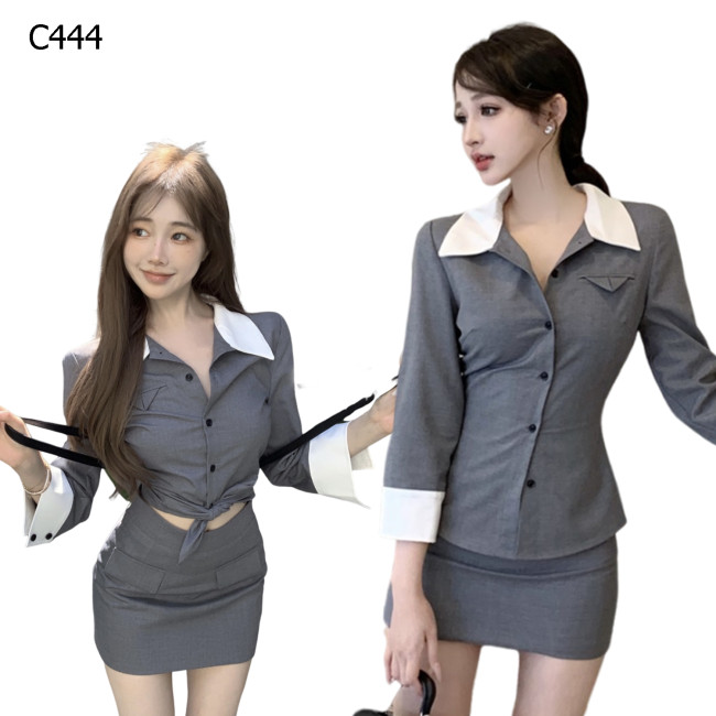 撞色九分袖單排扣襯衫+短裙套裝編號:C444