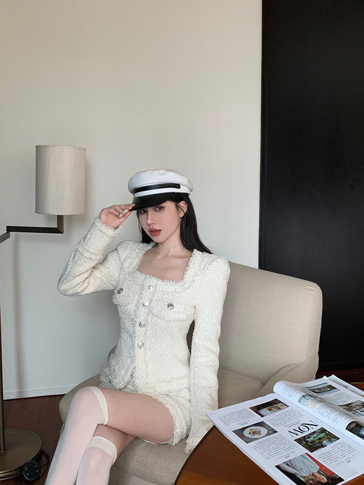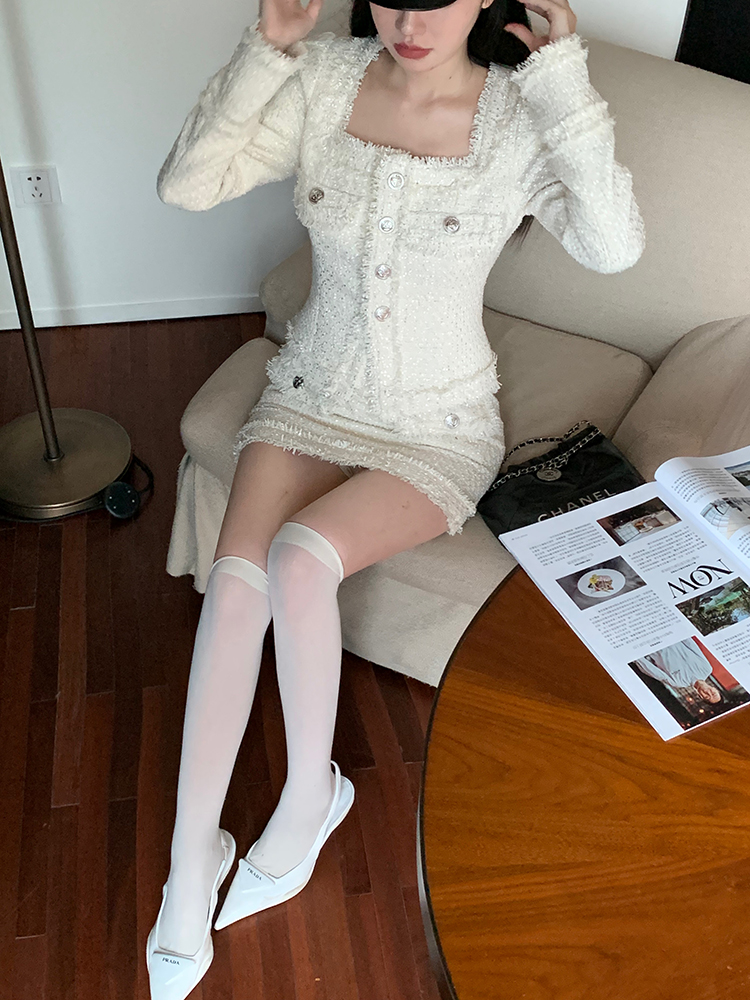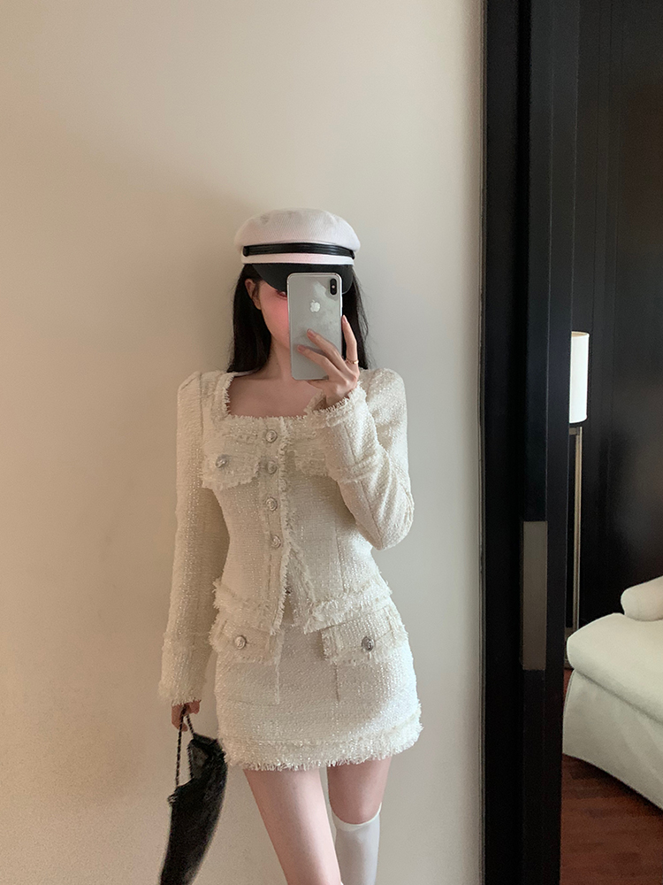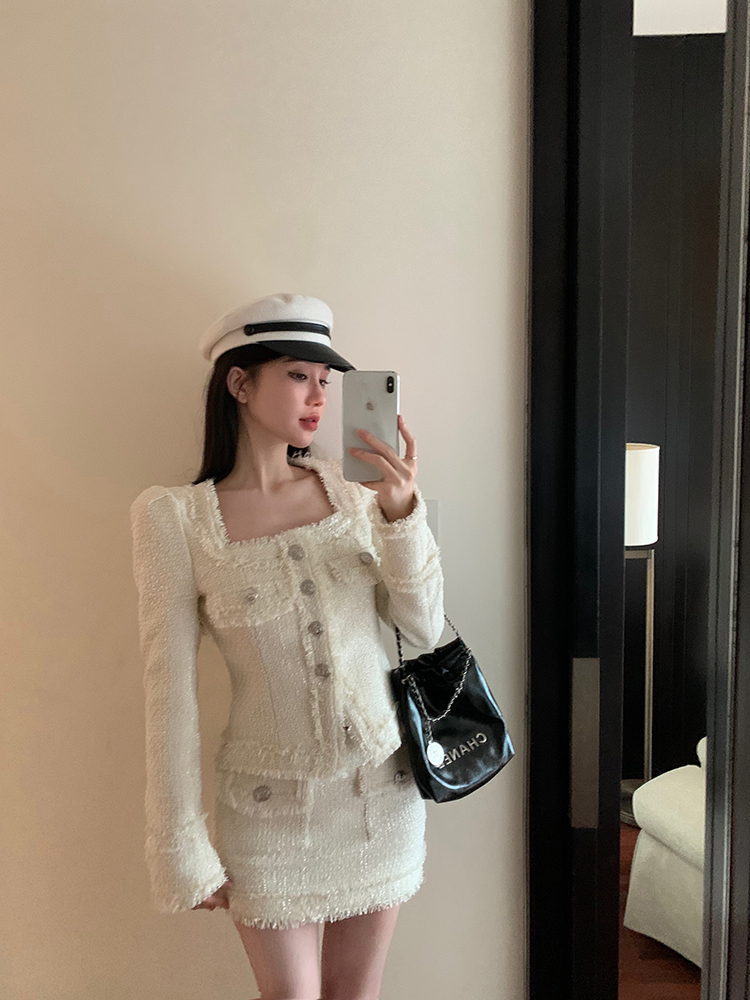 法式方領流蘇小香風套裝 編號:D155