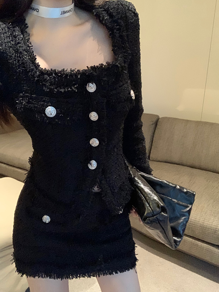 標籤: 法式方領流蘇小香風套裝 編號:D155, D155, 性感➠氣質套裝➠秋冬