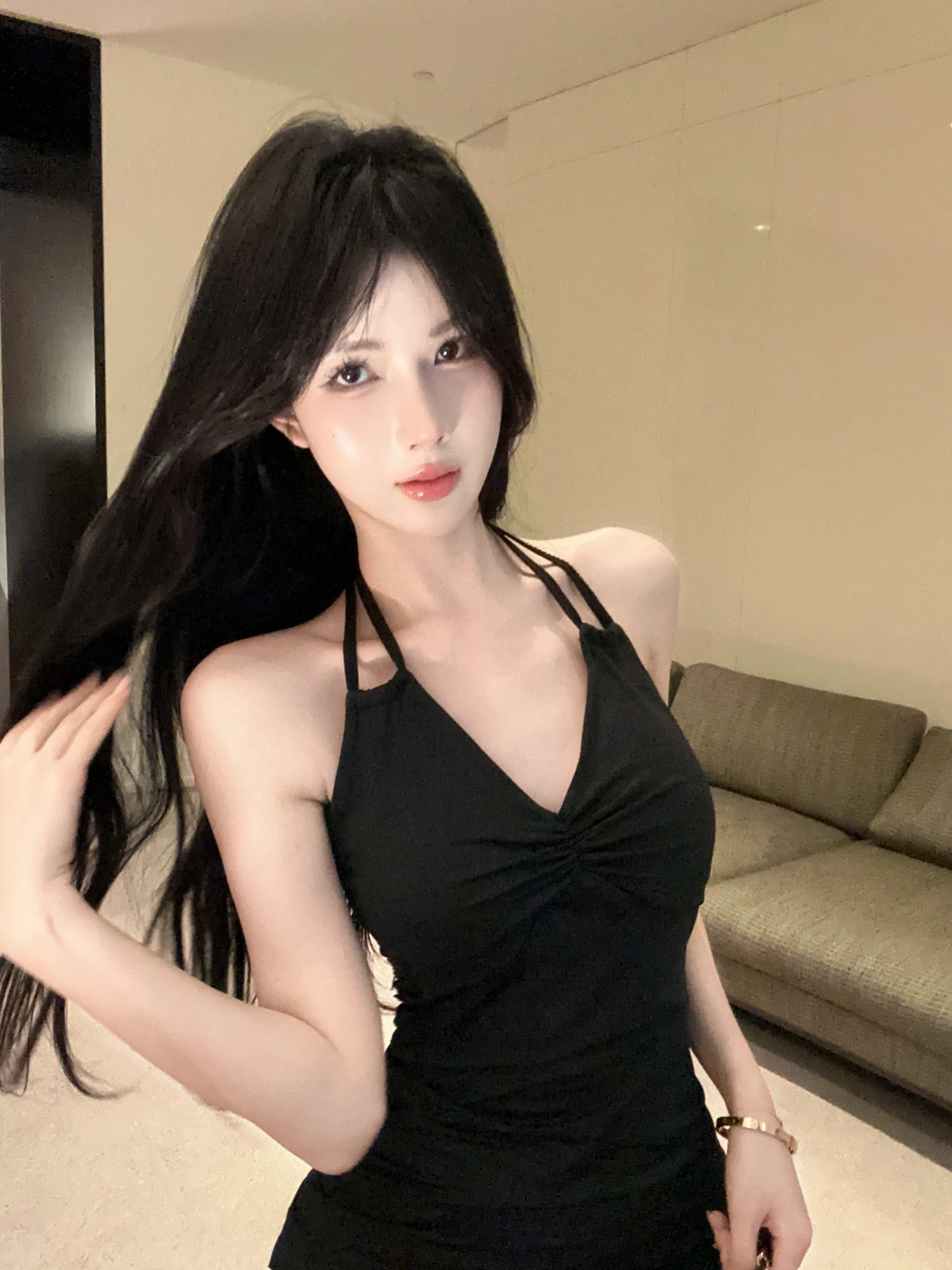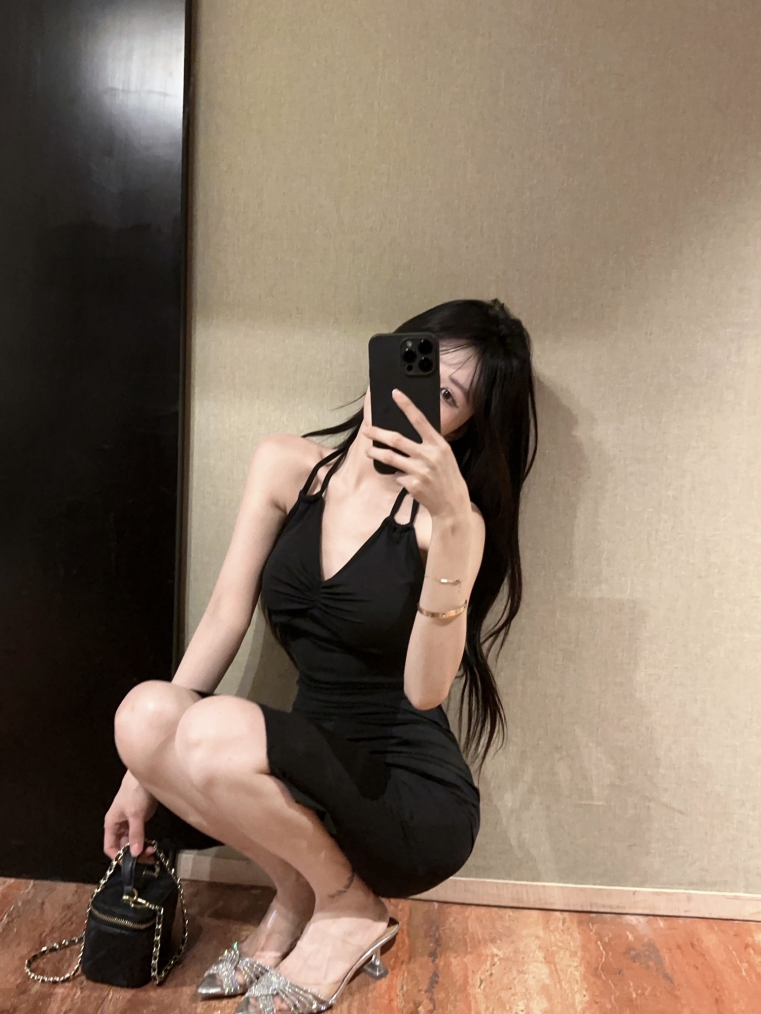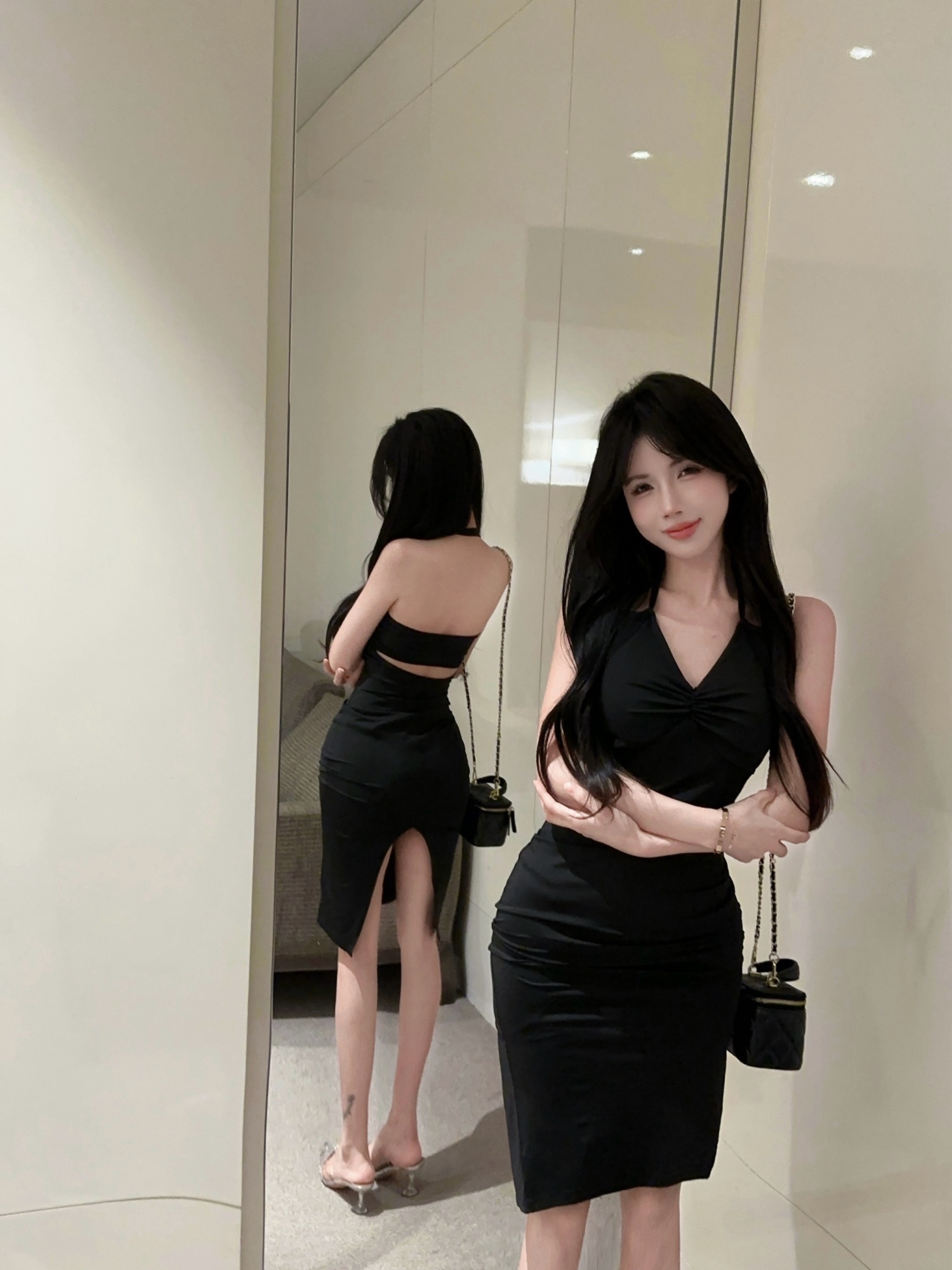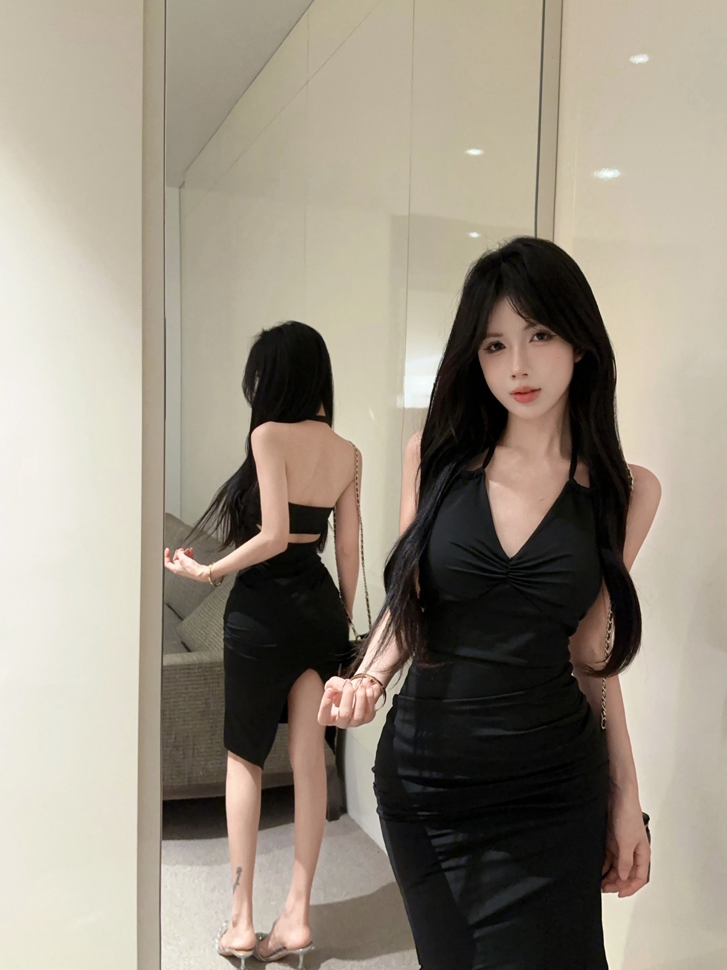 掛脖開叉小黑裙 編號:D434