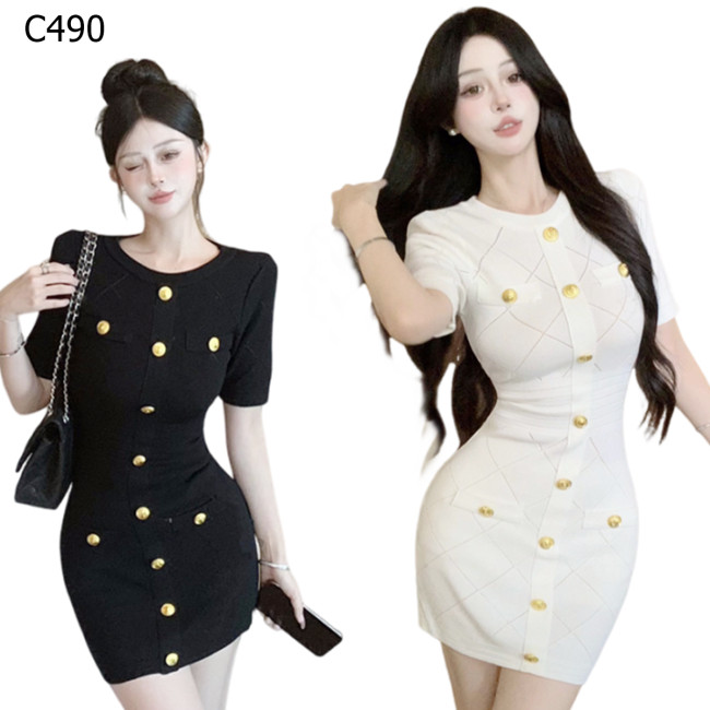 簡約風法式復古修身針織洋裝短裙編號:C490