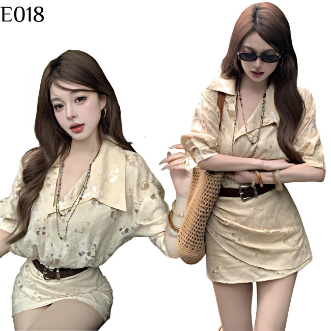標籤: 杏色浮雕浪花連身裙 編號:E018, E018, 氣質➠連身裙➠春夏