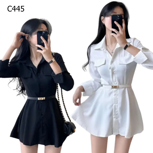 翻領長袖收腰襯衣洋裝 編號:C445