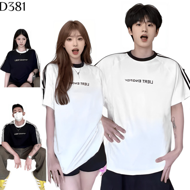 標籤: 三條杠純棉短袖T恤 編號:D381, D381, 情侶裝