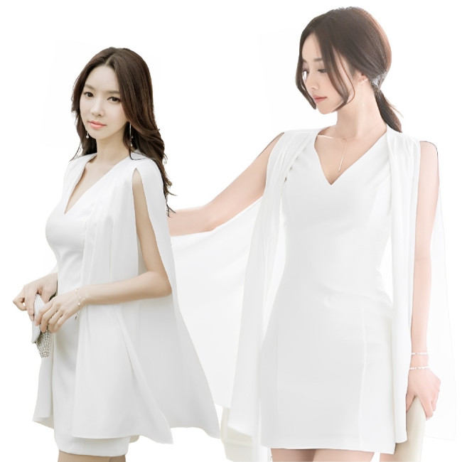 花瓣袖拼接深V領包臀連衣裙 編號:C167