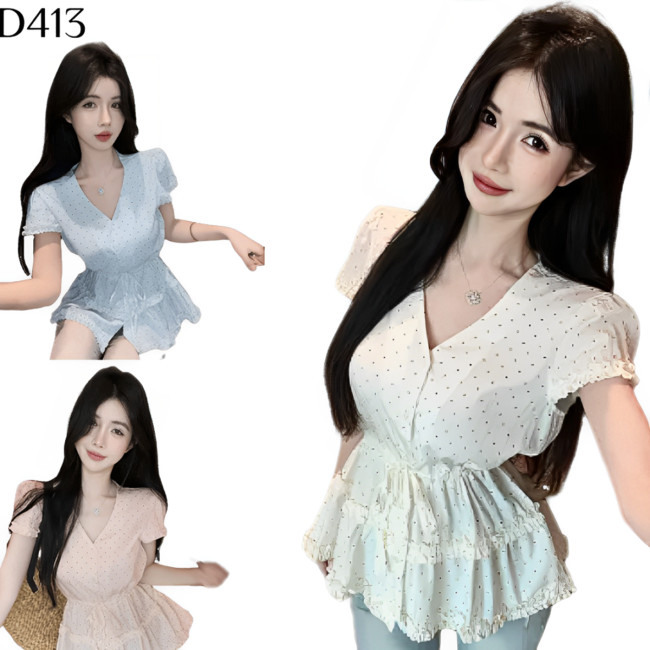 標籤: 木耳波點抽繩襯衫 編號:D413, D413, 短袖