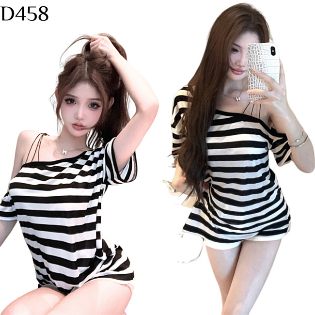 標籤: 名稱 慵懶條紋斜肩T恤 編號:D458, D458, 短袖