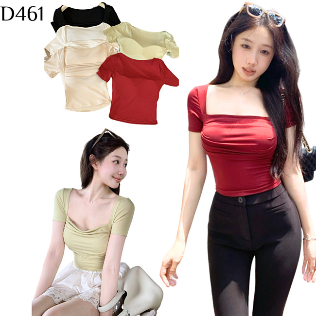 標籤: 褶皺方領胸墊T恤 編號:D461, D461, 短袖