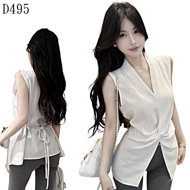 標籤: 扭結V領開叉背心 編號:D497, D497, 短袖