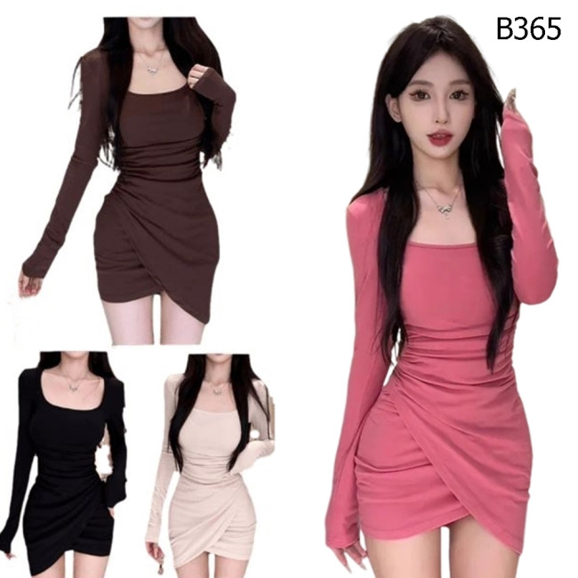 性感U領長袖連身裙 編號:B365