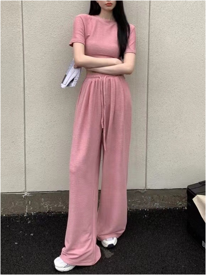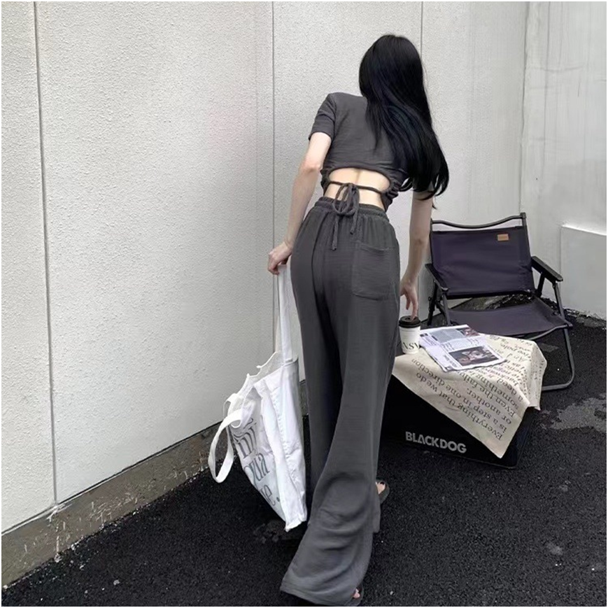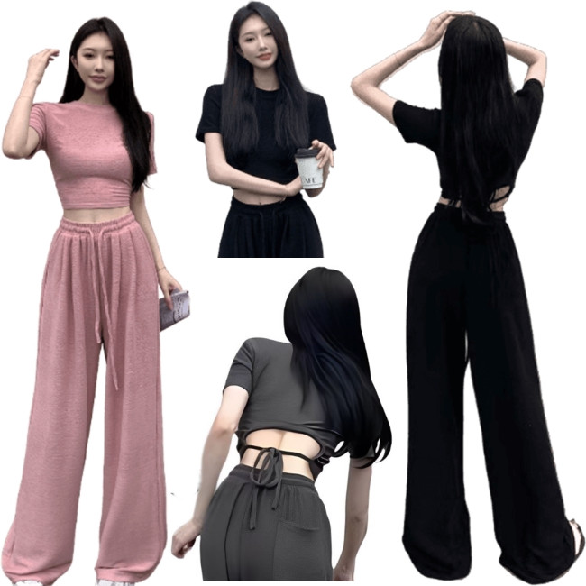 標籤: 設計感後背簍空T恤+高腰休閒闊腿褲兩件套 編號:C16, C16, 現貨商品(M)碼