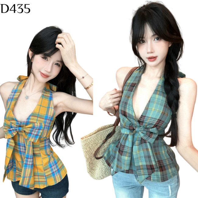 標籤: 格紋掛脖露背背心 編號:D435, D435, 短袖