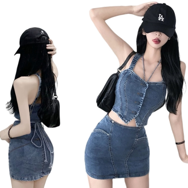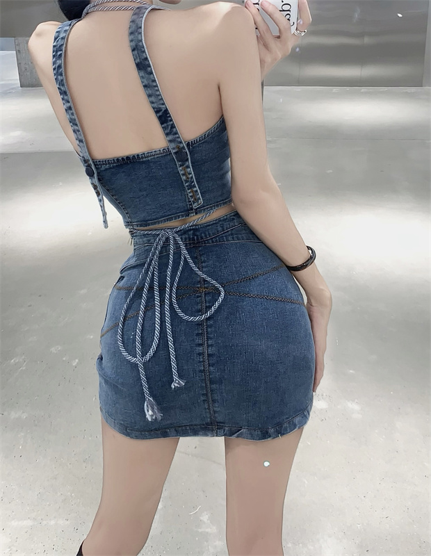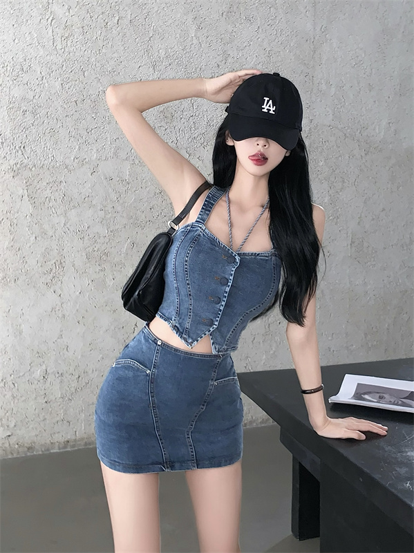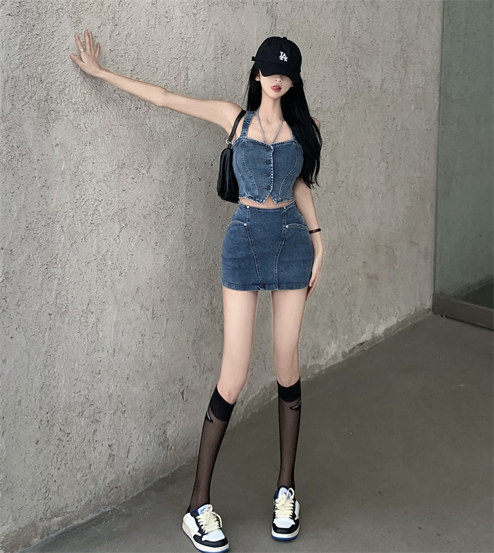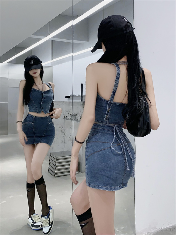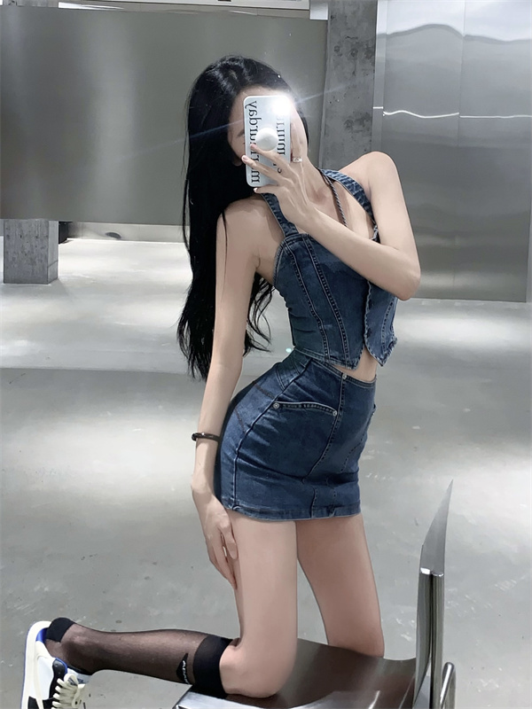 標籤: 牛仔短款背心+高腰裙 套裝 編號:B258, B258, 休閒➠套裝➠春夏