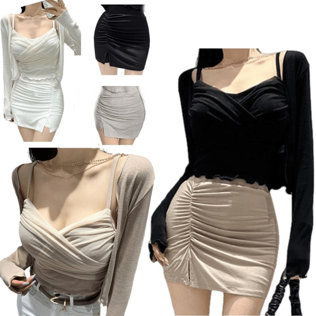 吊帶背心+外套+防走光褲裙 三件套裝 編號:B310